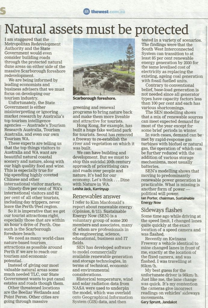 Natural Assets Must Be Protected– West Australian 14 November 2016